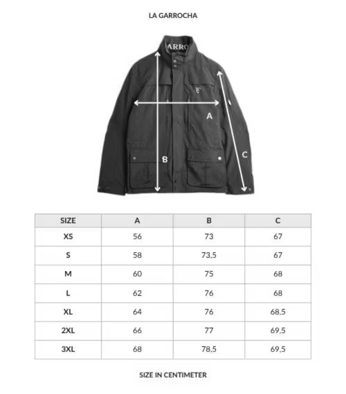 Corte recto, cierre frontal mediante cremallera bidireccional y botonadura de snaps. Cuello alzado con tejido de algodón personalizado en el interior, bordado conmemorativo en la parte trasera y capucha oculta. Dos bolsillos a la altura del pecho con cierre de cremallera y dos bolsillos a la altura de la cintura con cierre de snaps. Bordado de del hierro de La Garrocha a contraste en la parte frontal. Manga larga ajustable con snaps y bolsillo en la manga izquierda. Forro interior, ceñidores elásticos con retenedores a la altura de la cintura y bolsillo interior con cierre de cremallera. Aberturas laterales con cremallera para una mayor comodidad al montar.